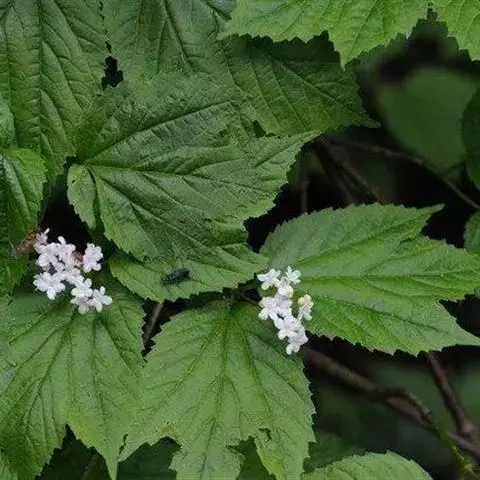 皱叶荚蒾是五福花科荚蒾属的小乔木植物。植株高达4米;叶柄及花序均被由黄白色、黄褐色或红褐色簇状毛组成的厚绒毛;小枝粗壮,稍有棱角;叶革质,卵状矩圆形至卵状披针形;聚伞花序稠密,总花梗粗,四角状,花冠呈现白色,雄蕊高出花冠;果实红色,后变黑色,宽椭圆形,无毛;花期为4-5月;果熟期为9-10月。皱叶荚蒾原产于中国,分布于陕西、湖北、四川及贵州等地。生长于山坡林下或灌丛中,海拔800-2400米。其性喜好阳光,耐半阴,喜温暖,有一定的耐寒性,喜湿润,不耐涝,耐中度盐碱,但在深厚肥沃、排水良好的中性或微酸性沙质土壤中生长更好,耐修剪,生长缓慢。其一般的繁殖方式为播种和扦插繁殖。皱叶荚蒾味苦,性凉。具有清热解毒、凉血止血的功效。可用于湿热痢疾、痈疽疮疖、咳血、吐血、便血、跌打损伤等疾病。皱叶荚蒾给人以郁郁葱葱的景象,全年观叶、春季观花