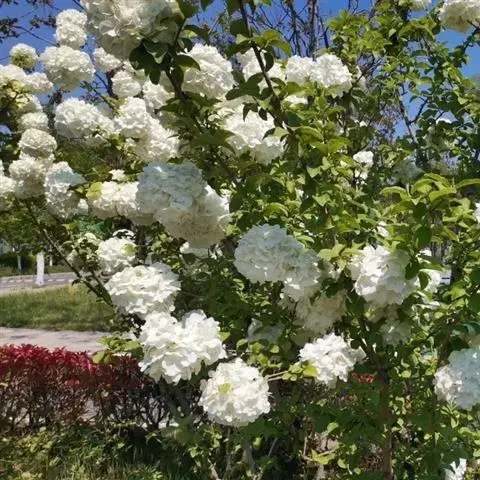 绣球荚蒾,五福花科荚蒾属落叶灌木,高可达3米,树冠球形;幼枝有垢屑状星状毛,老枝粗壮,具皮孔,…