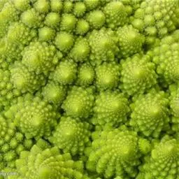 这种花椰菜的变种是最重要的不规则碎片形蔬菜。它的图案是斐波纳契数列,或称黄金螺旋型(一种对数螺旋,小花以花球中心为对称轴,螺旋排列)的天然代表。
