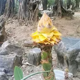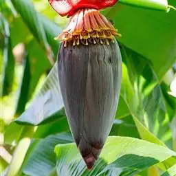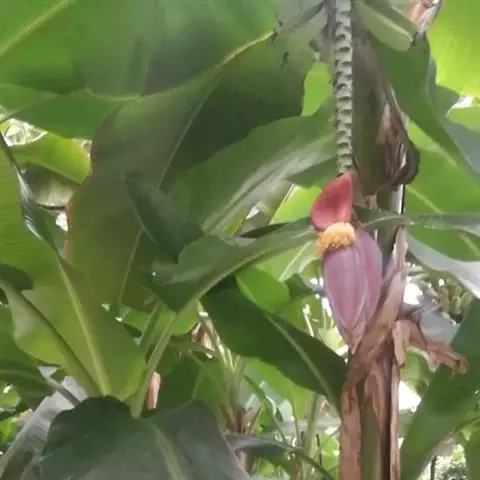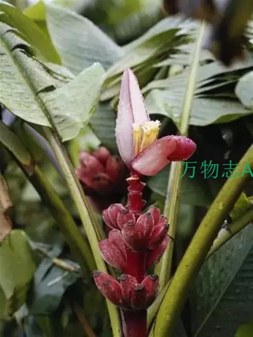 紫苞芭蕉形如一枝亭亭玉立、含苞待放的荷花,但却开在高高的芭蕉树上,这就是紫苞芭蕉。