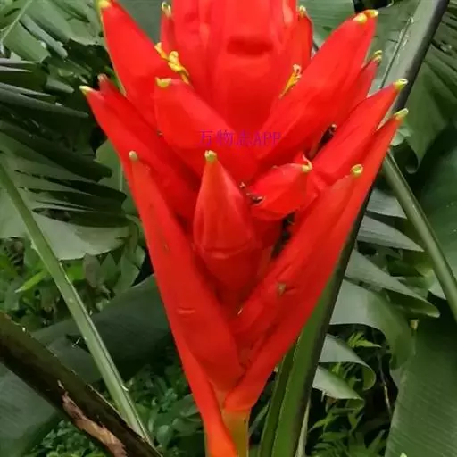 红蕉,假茎高1-2米。叶片长圆形,长1.8-2.2米,宽68-80厘米,叶面黄绿色,叶背淡黄绿色,…