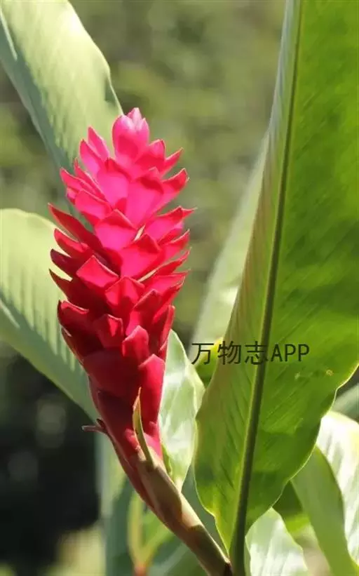 花序直立,序轴无毛,苞片外面鲜红而美丽,内面粉红色,皱折明显,每一苞片内有花一列,约6朵;雄花花被片乳黄色,合生花被片具5 (3+2) 齿裂,二侧裂片具角,离生花被片先端尖且具细齿,与合生花被片几等长。