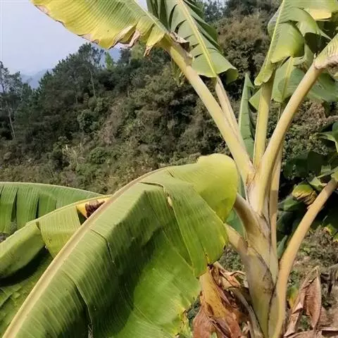 香蕉’),芭蕉科芭蕉属多年生草本植物,植株丛生,有匐匍茎;假茎浓绿有黑色斑点;叶片长圆形,…