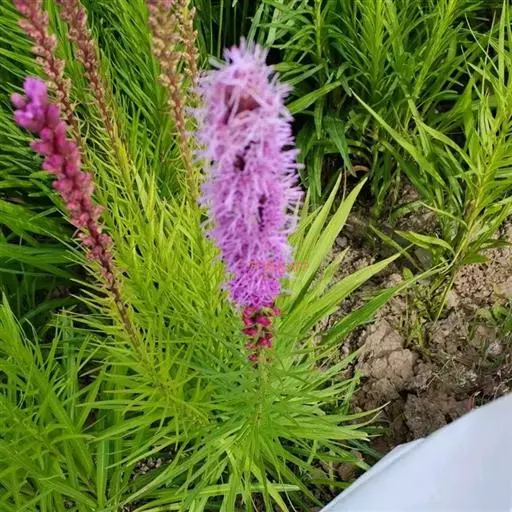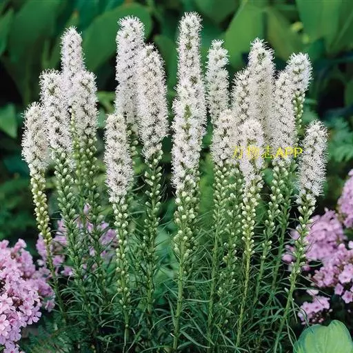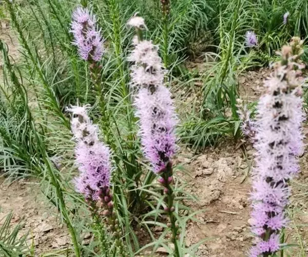 蛇鞭菊是多年生草本花卉植物,茎基部膨大呈扁球形,地上茎直立,株形锥状。基生叶线形,长达30厘米。头状花序排列成密穗状,长60厘米,因多数小头状花序聚集成长穗状花序,呈鞭形而得名。茎基部膨大呈扁球形,地上茎直立,株形锥状。蛇鞭菊具地下块茎,花葶长70-120厘米,花序部分约占整个花葶长的1/2。小花由上而下次第开放,花色分淡紫和纯白两种。叶线形或披针形,由上至下逐渐变小,下部叶长约17厘米左右,宽约1厘米,平直或卷曲,上部叶5厘米左右,宽约4毫米,平直,斜向上伸展。花期7-8月。