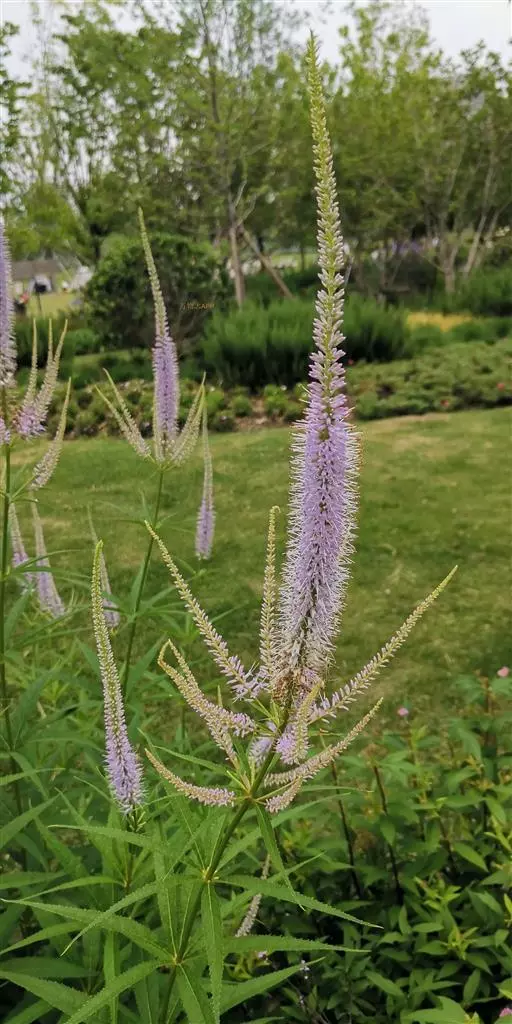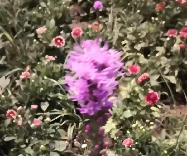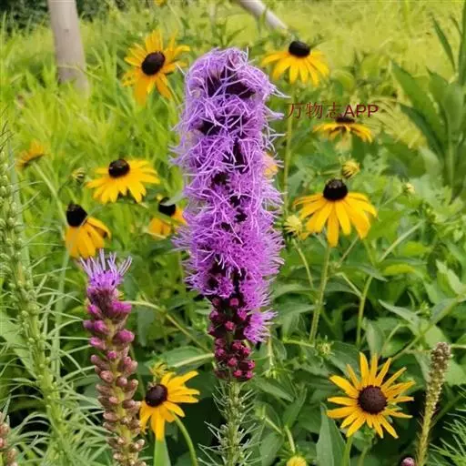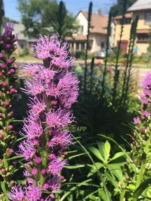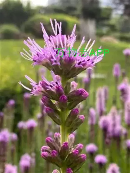 蛇鞭菊(学名:Liatris spicata (L.) Willd.):多年生草本植物。茎基部膨大呈扁球形。花红紫色。花期夏、秋季。因多数小头状花序聚集成密长穗状花序,小花由上而下次第开放,好似响尾蛇那沙沙作响的尾巴,呈鞭形而得名。是一种宿根植物,蛇鞭菊花期长,自然花期盛夏。花茎挺立,花色清丽,不仅有自然花材之美,而且具美好的花寓意。