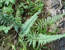 对马耳蕨(学名:Polystichum tsus-simense (Hook.))是鳞毛蕨科、耳蕨属植物。植株高30至60厘米。根茎接近直立,禾秆色叶柄丛生,长15至30厘米;叶片披针形,长18至30厘米,宽8至15厘米,小叶片为不等边的长矩圆形;有锐尖状芒状坚齿,叶面有光泽。孢子囊群分散生于叶缘和中肋之间,圆形,黑色,孢子囊群盖盾形。