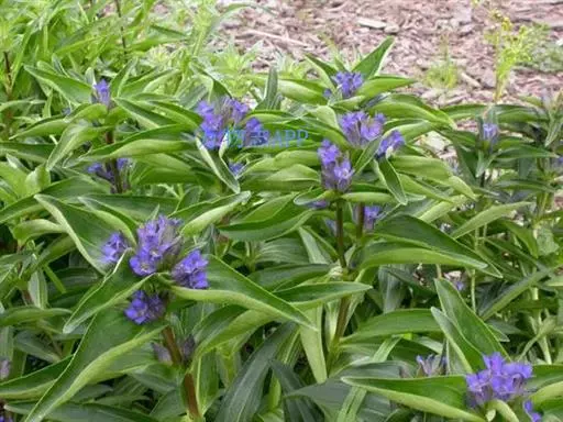 秦艽(Gentiana macrophylla),别名:大叶龙胆、大叶秦艽、西秦艽。多年生草本植物,圆柱形根,基生叶较大,茎生叶3-4对,披针形叶片,基部连合;夏秋开筒状深蓝紫色花,花丛生于上部叶腋成轮状,裂片先端尖;长椭圆形蒴果。有极高的药用价值,是治治疗风湿关节痛、结核病、潮热、黄疸等症的主药之一。产于蒙古、俄罗斯、中国大陆的内蒙古、宁夏、河北、陕西、新疆、东北、山西等地。