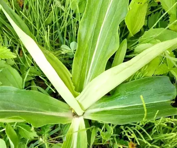 枝少数丛生,直立或斜升,黄绿色或有时上部带紫红色,近圆形。莲座丛叶卵状椭圆形或狭椭圆形,长6-28厘米,宽2.5-6厘米,先端钝或急尖,基部渐狭,边缘平滑,叶脉5-7条,在两面均明显,并在下面突起,叶柄宽,长3-5厘米,包被于枯存的纤维状叶鞘中;茎生叶椭圆状披针形或狭椭圆形,长4.5-15厘米,宽1.2-3.5厘米,先端钝或急尖,基部钝,边缘平滑,叶脉3-5条,在两面均明显,并在下面突起,无叶柄至叶柄长达4厘米。