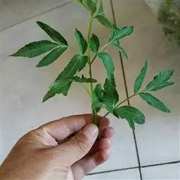 茎在营养生长期短缩,叶着生其上。1~2回羽状全裂,小复叶2~3个,卵圆形3裂,边缘锯齿状。