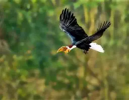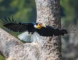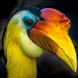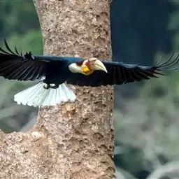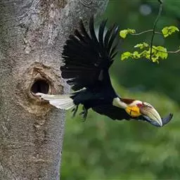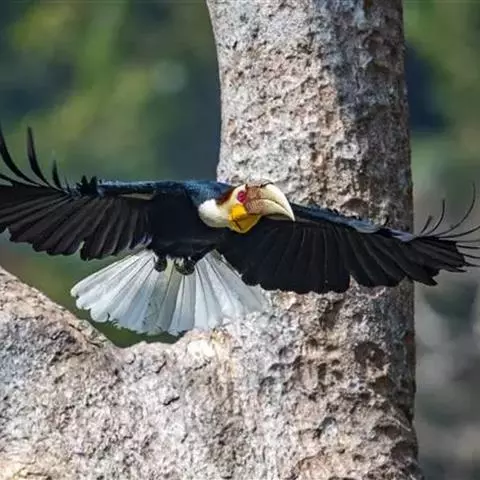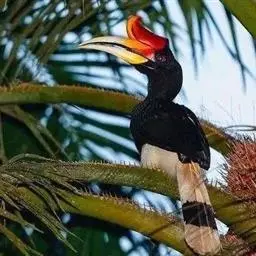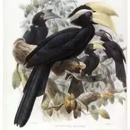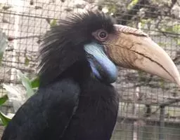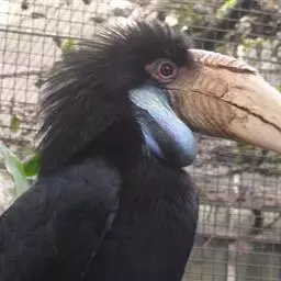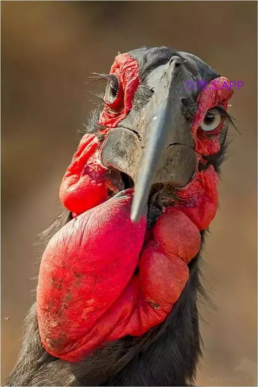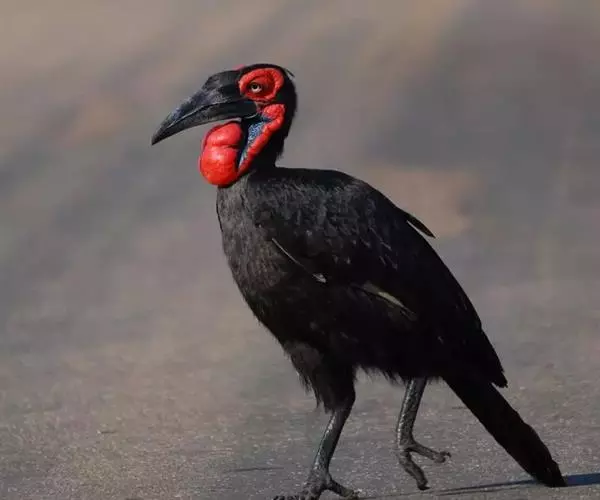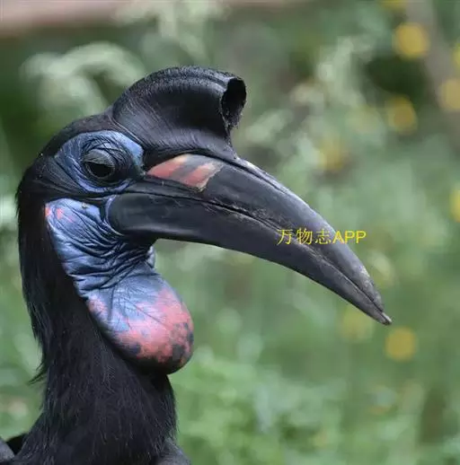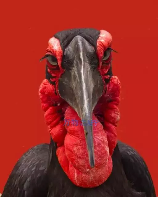 红脸地犀鸟全长约127cm,是犀鸟科中体型最大的鸟。全身体羽为黑色,嘴和脚也为黑色。脸部、喉部及喉囊,裸露的皮肤为朱红色。