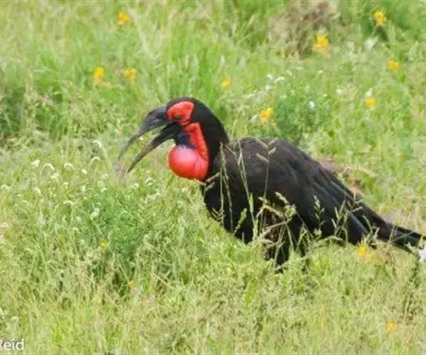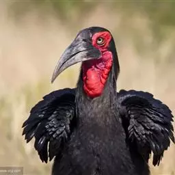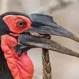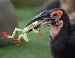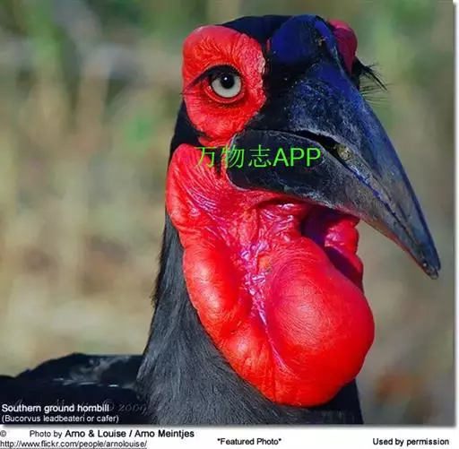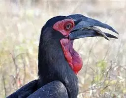 红脸地犀鸟是地栖犀鸟的一种,是非洲常见的地犀鸟。由于外形奇特,是著名的珍惜玩赏鸟,全国部分动物园和鸟园有饲养展出。它们生活在非洲南部,大部分时间在地面上活动。雄性地犀鸟体长可达129厘米,重达6.2公斤,雌性体型稍小。
