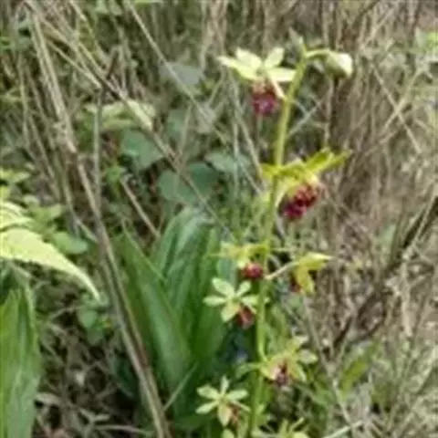 无距虾脊兰:假鳞茎近圆锥形,粗约1厘米,具3-4枚鞘和2-3枚叶。叶在花期尚未完全展开,…