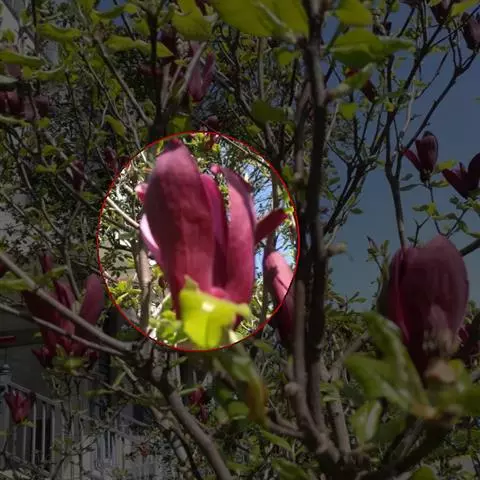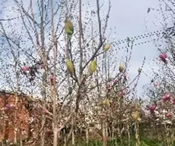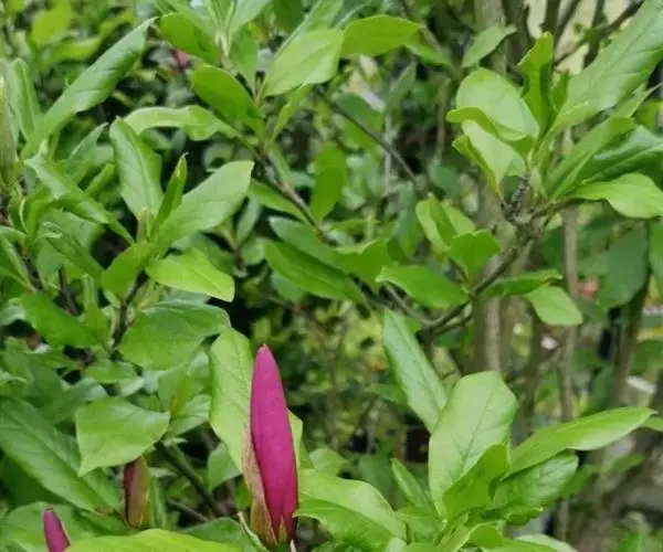6、紫玉兰尖头木兰(M.×brooklynensis):M.acuminata×紫玉兰 M.liliiflora ,1954年由Evamaria Sperber在布鲁克林植物园(Brooklyn Botanic Garden)培育。