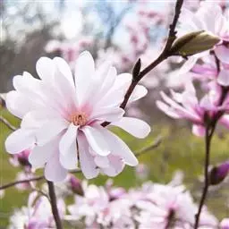 1、二乔木兰(Magnolia×soulangeana):是由紫玉兰和玉兰自然杂交得到,花色比紫玉兰要淡,介于两亲本之间,外面粉红色或淡紫色,里面白色,是着名的庭园观赏品种。在这3种玉兰的组织培养实验中,紫玉兰的再生能力最差,由此也可以看出紫玉兰是非常珍贵的花木。栽培种。