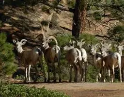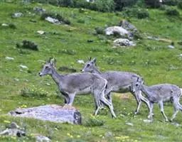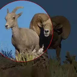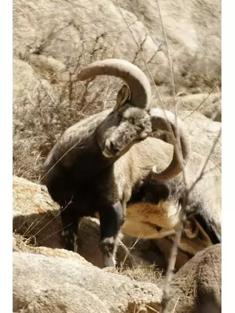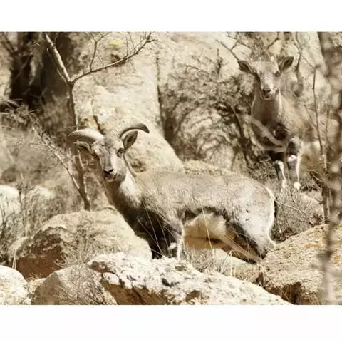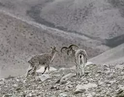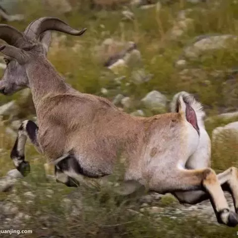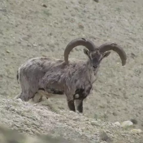 盘羊:雄性肩高可达120厘米,体重可达200千克。雄性的弯角粗大,长达1米以上,向下扭曲呈螺旋状,…