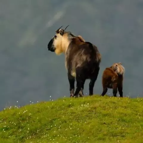 羚牛,偶蹄目牛科羚牛属哺乳动物,俗称扭角羚、野山牛、盘羊。其体形粗壮。尾短。吻鼻部隆起且裸露。…