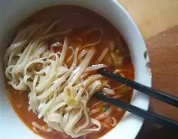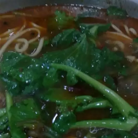 D、先往烧开的水里煮点蔬菜(冬天可用莴笋),等2分钟把面放下去,搅拌一下,煮到断生(用手掐开一截面,没有白点即可)就可以装碗了。