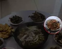 2.炒锅置火上,放猪油烧热,下干辣椒略炒,继下豆瓣、泡辣椒、花椒,炸出香味,再加盐、冰糖、醪糟汁、牛油、老姜(拍破),炒几下,再下鲜汤烧开,打去泡沫,倒入火锅之中,烧沸加入味精,即可烫食。先下海蟹煮起(海蟹可从中一劈为二),其余各料随烫随食。由于海味原料质韧,可多煮一会儿再吃。