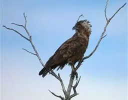 白肩雕:又名御雕,是大型猛禽。体长73-84厘米。体羽黑褐色,头和颈较淡,肩部有明显的白斑,在黑褐…