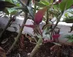 由腐霉菌引起的秋海棠根腐病症状:感染这种病菌后,扦插苗的根系弱、叶片发黄。诊断方法是茎部和根系出现黑色的糊状物,从插条的基部可以一直蔓延到茎和叶片的部。根部和茎段的腐烂经常是成片发生,而通过栽植床,很容易将病菌传染给健康的插条。