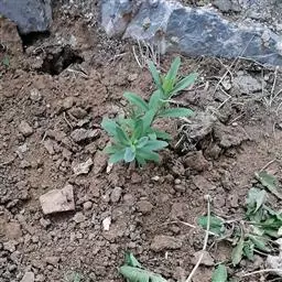 育苗移栽:在水源困难的山坡地种植时,为了方便管理,先集中育苗,到雨季根据墒情再移栽。金铁锁种子发芽最适宜温度20-25℃,湿度50%-60%,为了充分利用生长季节,应采用小棚育苗,提早播种。每亩用种约1.5千克,每平方米撒种1200粒左右,然后覆盖混合土,盖松毛,接着浇透水,并保持苗床湿润。根据苗子的大小,可在雨季(7-8月)移栽,也可选择秋末地上部分枯萎后移栽或开春萌芽前移栽。最好当天取苗当天移栽,不超过48小时,移栽株行距为10厘米×20厘米,移栽时一定要让根系充分舒展,不能弯曲,否则影响主根生长。移栽后及时浇透定根水,并覆盖一层松毛。