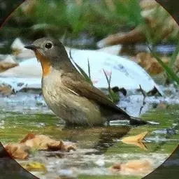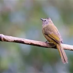 雌鸟从头到尾等整个上体橄榄褐色翅上小覆羽和初级覆羽褐黑色,中覆羽和大覆羽亦褐黑色,外翈具橄榄绿色羽缘。尾羽褐黑色,最外侧两对尾羽内翈具白色端斑,头侧、颈侧和胸侧橄榄灰色。颏、喉和胸部中央灰白色,其余下体淡黄色,两胁沾橄榄色,腋羽和翼下覆羽白色。