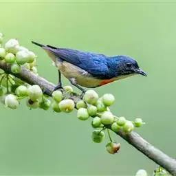 栖息地包括亚热带或热带的湿润低地林、旱林和湿润山地林。常单独或成2-3只的小群活动和觅食,习性和其他啄花鸟相似,喜欢在藤条上跳跃或在花丛间飞来飞去。树栖性,主要在树冠层上部活动,尤其在有成熟的软的果实或有寄生植物的树上活动和觅食。主要以昆虫和植物果实为食,特别是寄生植物的果实。分布于尼泊尔至中国西南、缅甸及印度支那。