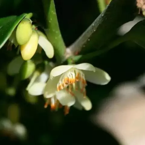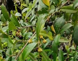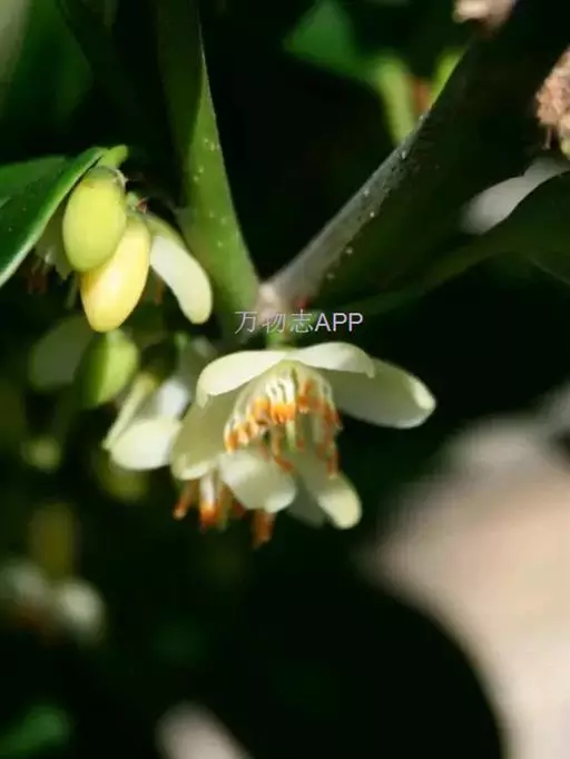 (原变种)灌木或小乔木,高2-10米,胸径约20厘米,全株无毛;树皮灰褐色或灰白色;顶芽大,长锥形,长1-1.5厘米,无毛;嫩枝褐色,略具二棱,小枝灰褐色,圆柱形。叶革质,长圆形或长圆状椭圆形至椭圆形,长6-9厘米,宽2.5-3. 5厘米,顶端渐尖或短渐尖,稀可近于钝形,基部楔形或阔楔形,全缘,上面深绿色,有光泽,下面淡绿色;中脉在上面平贴或少有略下凹,下面隆起;侧脉6-8对,稀可达10对,两面稍明显,有时且隆起,或在下面不明显;叶柄长7-10毫米。花常2-4朵腋生,花梗长1-2厘米;苞片2,早落;萼片5,卵圆形或圆形,长宽各约2.5毫米,顶端圆,边缘有纤毛;花瓣5,白色,倒卵状长圆形,长约8毫米;雄蕊25-30枚,长4-6毫米,花药卵形或长卵形,长约1.5毫米,有丝毛,花丝无毛,药隔顶端有小尖头;子房圆球形,无毛,2室,胚珠每室10多个,花柱长约6毫米,顶端2浅裂。果实圆球形,成熟时紫黑色,直径8-10毫米,果梗长1.5-2厘米;种子每室数个至10多个,扁圆形,深褐色,有光泽,直径约2毫米。花期5-6月,果期10-11月。
