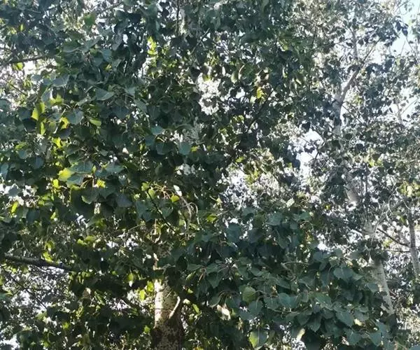 黑杨,为乔木,高30米;树冠阔椭圆形。树皮暗灰色,老时沟裂。小枝圆形,淡黄色,无毛。芽长卵形,富粘质,…