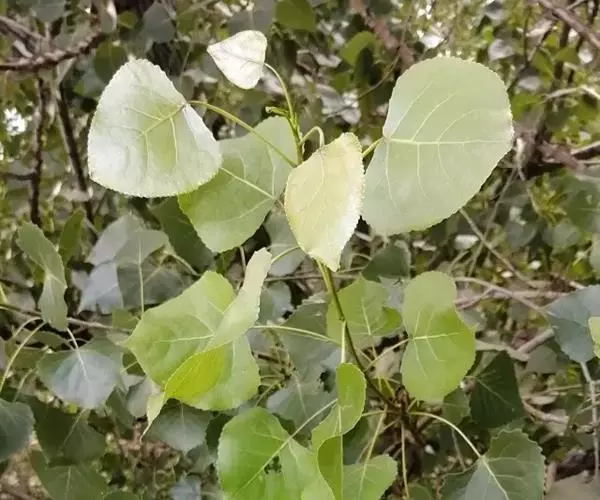 胡杨组,芽无粘质,有毛。叶形多变化,两面同为灰蓝色,仅下面有气孔;叶柄圆。