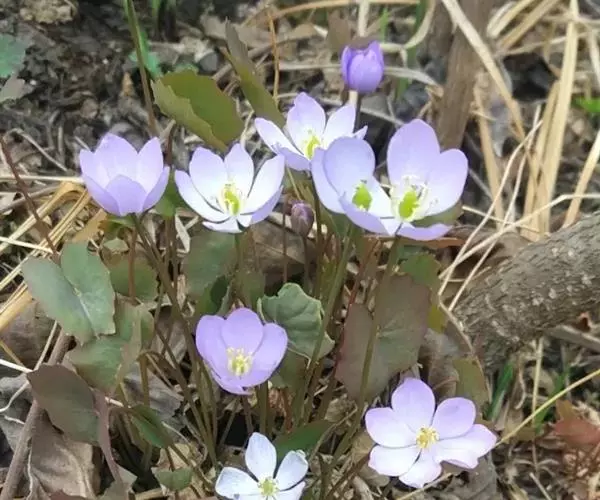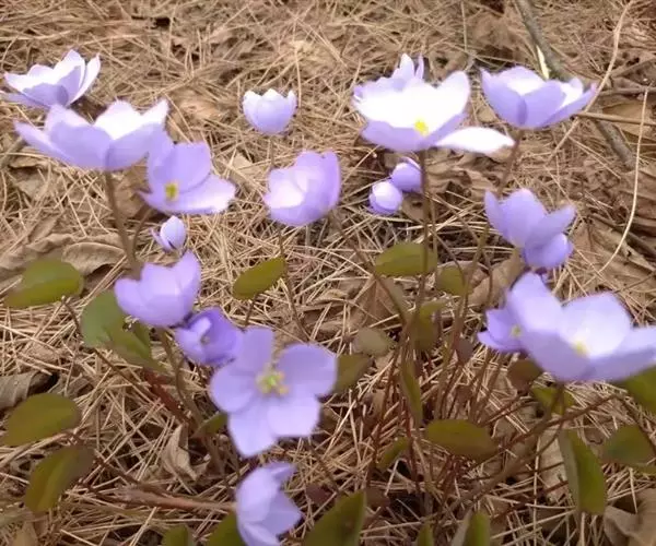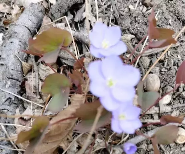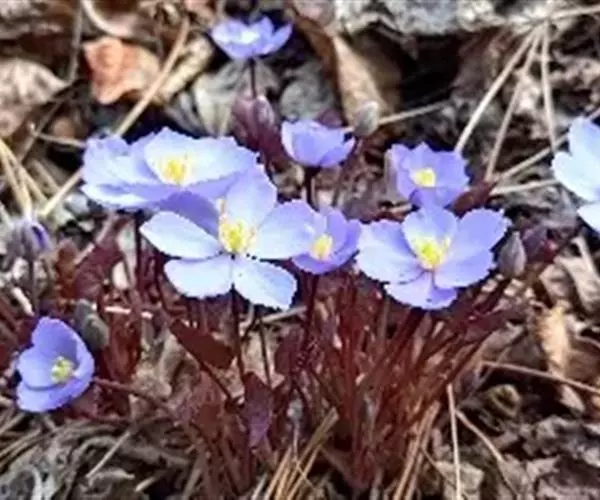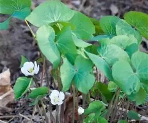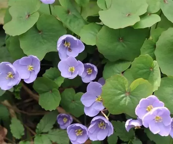 多年生草本,植株高10-30厘米,光滑无毛。根状茎细瘦,密生细而有分枝的须根,横切面鲜黄色,生叶4-6枚;地上茎缺如。单叶,膜质,叶片轮廓近圆形,长6-8厘米,宽约9-10厘米,先端凹陷,具1针刺状突尖,基部深心形,边缘微波状或全缘,掌状脉9-11条,背面灰绿色;叶柄长10-30厘米,无毛。花葶长15-20厘米;花单生,淡紫色;萼片6,花瓣状,紫红色,长圆状披针形,长约6毫米,具条纹,无毛,早落;花瓣6,倒卵形,基部渐狭,长约1厘米,宽约0.6厘米;雄蕊6,长约6毫米,花丝扁平,长约2毫米,花药长约4毫米;雌蕊长约4毫米,无毛,花柱长约2毫米,柱头浅杯状,边缘皱波状,胚珠多数。蒴果纺锤形,长约1.5厘米,黄褐色,自顶部往下纵斜开裂,宿存花柱长约3毫米。种子多数,黑色。花期5-6月,果期9-10月。
