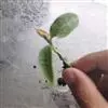 方法一 准备好兰盆及植料后,将兰株倒拿(根在上,叶在下)放于水龙头下以慢水冲洗,但水压切忌过强,以免伤兰根及叶子。用拇指和食指抓住兰头,小指抵住盆缘,用竹筷将根固定,当放入盆内时,尽量不要让根接触到盆壁。将豆粒大的混合石砾倒入盆底至三分之一处。然后倒入中粒植料至五分之四处,填实和尽量不要留下空间。将竹筷拔出,并摇实盆中植料。填实植料后,再用大粒植料埴入至距盆缘1.5厘米处。最后再倒入豆粒大植料,以将假鳞茎全部埋入土中为度,然后充分摇实。用压土工具轻压植料,并将表面弄平。种植完毕后,植料在盆中以中央稍高为好。