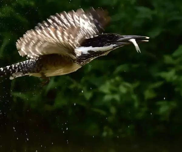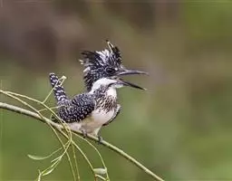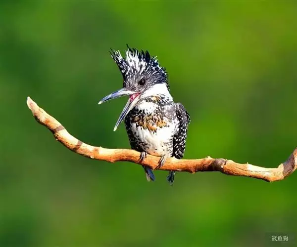 冠鱼狗(学名:Megaceryle lugubris):是一种中等体型的鸟类。体长24-26厘米,翼展45-47厘米,体重70-95克,寿命4年。这种鱼狗头具显著羽冠。体羽黑色,具许多白色椭圆或其他形状大斑点,羽冠中部基本全白色,只有少许白色圆斑点。