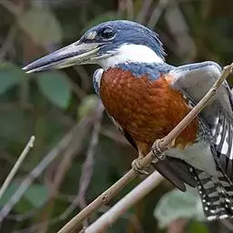 绿鱼狗是佛法僧目翠鸟科的鸟类。成年雄鸟,额头和眼先是黑色,头顶端深绿色呈古铜光泽。翅膀羽毛有白色斑…