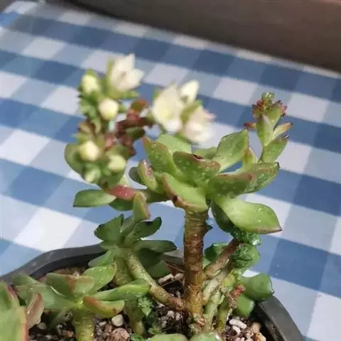 红卷叶 景天科风车草属的多肉植物,株型和石莲花属的极为相似,花瓣披蜡,叶面有白粉。平时为绿色日照充足的时叶色为朱红带褐色,养护得当会开出黄色星状小花。
