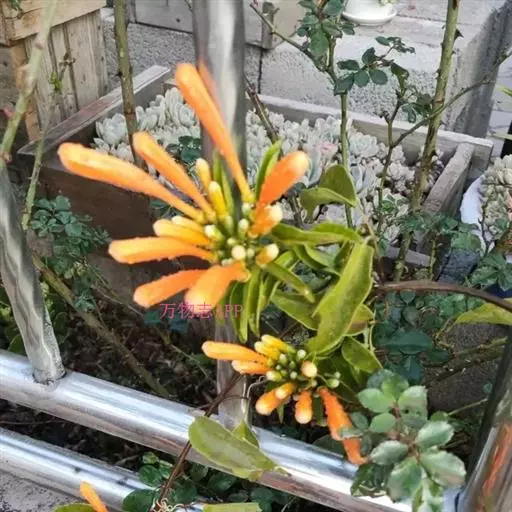 炮仗花,别名:黄鳝藤;拉丁文名:Pyrostegia venusta (Ker-Gawl.) Miers.被子植物门;双子叶植物纲;管花目; 紫葳科;炮仗藤属;炮仗花。