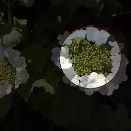 聚伞花序伞形式,球形,直径4-8厘米,常生于具1对叶的短侧枝上,全部由大型的不孕花组成,总花梗长1.5-4厘米,稍有棱角,被黄褐色簇状毛,第一级辐射枝6-8条,花生于第四级辐射枝上;萼筒倒圆锥形,无毛或有时被簇状毛,萼齿卵形,顶钝圆;花冠白色,辐状,直径1.5-3厘米,裂片有时仅4枚,倒卵形或近圆形,顶圆形,大小常不相等;雌、雄蕊均不发育。花期4-5月。