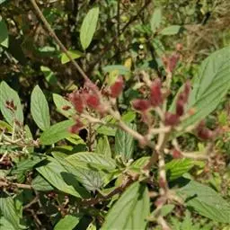 皱叶荚蒾是五福花科荚蒾属的小乔木植物。植株高达4米;叶柄及花序均被由黄白色、黄褐色或红褐色簇状毛组成的厚绒毛;小枝粗壮,稍有棱角;叶革质,卵状矩圆形至卵状披针形;聚伞花序稠密,总花梗粗,四角状,花冠呈现白色,雄蕊高出花冠;果实红色,后变黑色,宽椭圆形,无毛;花期为4-5月;果熟期为9-10月。皱叶荚蒾原产于中国,分布于陕西、湖北、四川及贵州等地。生长于山坡林下或灌丛中,海拔800-2400米。其性喜好阳光,耐半阴,喜温暖,有一定的耐寒性,喜湿润,不耐涝,耐中度盐碱,但在深厚肥沃、排水良好的中性或微酸性沙质土壤中生长更好,耐修剪,生长缓慢。其一般的繁殖方式为播种和扦插繁殖。皱叶荚蒾味苦,性凉。具有清热解毒、凉血止血的功效。可用于湿热痢疾、痈疽疮疖、咳血、吐血、便血、跌打损伤等疾病。皱叶荚蒾给人以郁郁葱葱的景象,全年观叶、春季观花