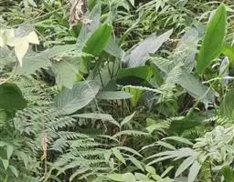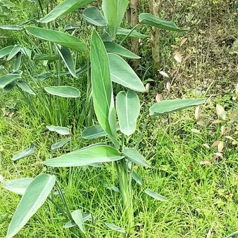 水竹芋为竹芋科多年生草本植物,植株高可达2米。叶互生,叶片卵形,叶色青绿,叶缘紫色,上被白粉,叶片长20厘米至40厘米,宽10厘米至15厘米,具较长叶柄。