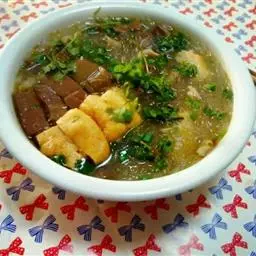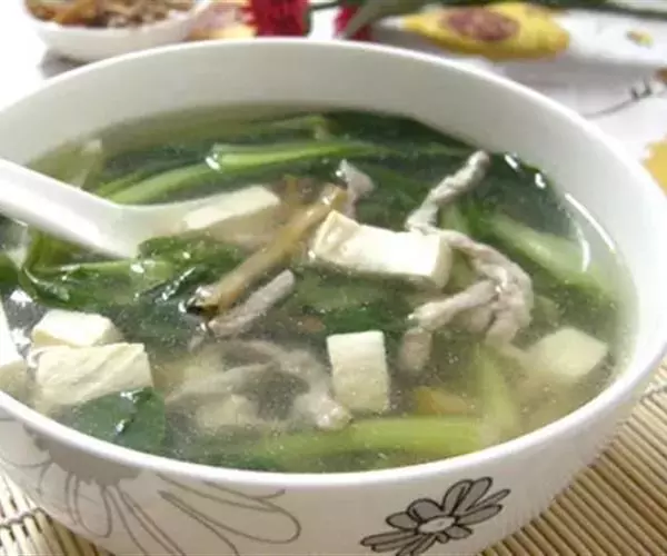 榨菜数片,豆腐1/2块,里脊肉约100克,高汤1杯,盐1/4茶匙,胡椒粉少许,葱花1大匙