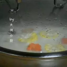 2、汤锅内放入高汤,再加入3杯水,煮滚后加入榨菜、豆腐以小火煮约3分钟,放入肉片,至肉熟后加入盐、胡椒调味,上撒葱花。