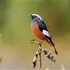 红背红尾鸲(学名:Phoenicurus erythronotus)是鹟科、红尾鸲属小型鸟类,体长14-17厘米。雄鸟前额、头顶至后颈灰色或浅蓝灰色,背、腰、尾上覆羽和下体棕红或锈红色,两翅黑褐色,翅上有大块白斑极为醒目,眼和眼以下脸颊有一大块黑斑,向后经耳羽、颈侧一直延伸到翅端,特征极为明显,野外不难识别。雌鸟野外识别特征不很突出,头和上体褐色,翅上亦有白斑,但较雄鸟小。下体浅灰褐色而沾橙棕色,尾下覆羽浅棕色。