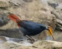 红背红尾鸲主要栖息于多岩石的山地灌丛和针叶林中,尤以林下植物茂密的山间溪流和沟谷森林以及多灌丛的砾石滩和林缘灌丛地带较常见,有时也活动于荒漠中的绿洲和富有灌木的沙石滩。