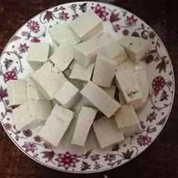 干豆腐 干豆腐的制作方法前期和制作大豆腐一样。首先要洗豆腐包。所不同的是,做干豆腐的,是那种长长的粗纱白布,大约半米宽,几十米长。而做大豆腐的豆腐包,则是很大很大的方形,也是粗纱布,边长大约要两米左右。把豆腐包洗净后,晾干,备用。
