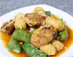 山珍豆腐是一道川菜,主料有豆腐,调料有大葱、姜、植物油、酱油、料酒。
