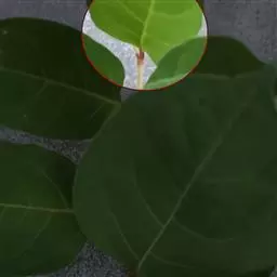 症状:主要为害天竺桂叶片。病菌大部分从叶尖或边缘侵入。感病叶片初期出现赤褐色,周围有较宽黄色环晕的小点,扩大后为圆形或不规则的病斑,黄褐色,最后中央灰白色,上散生黑色小点。病部与健部交界处有一明显深褐色的缘带。一般在高温高湿的环境条件下易发生,夏、秋季病害发生较重。 防治方法:25%火把可湿性粉剂对天竺桂叶斑病病原菌菌落生长的速率、孢子的萌发率及叶片感染率的抑制作用最大,其次为露易和腈福2种杀菌剂。