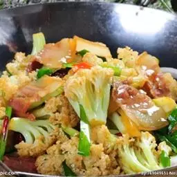 干锅花菜,是湘菜常见的一道菜,以花菜、秀珍菇、蘑菇、青红尖椒为主要食材,…