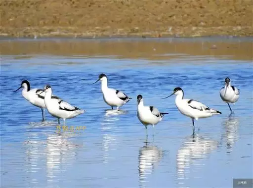 反嘴鹬(学名:Recurvirostra avosetta)是反嘴鹬科反嘴鹬属鸟类。中型涉禽,体长40-45厘米。嘴黑色,细长而向上翘。脚亦较长,青灰色。头顶从前额至后颈黑色,翼尖和翼上及肩部两条带斑黑色,其余体羽白色。飞翔时黑色头顶、黑色翅尖,以及背间部和翅上的黑带与白色的体羽和远远伸出于尾后的暗色脚形成鲜明对比,甚为醒目,野外不难识别。