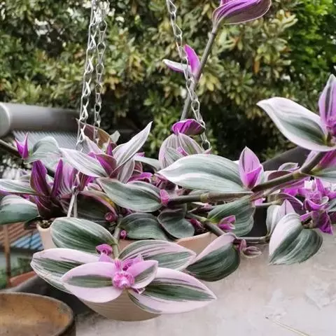 吊竹梅是鸭跖草科紫露草属的多年生草本植物;茎半肉质,柔弱披散至悬垂;叶椭圆形至长圆形,无柄,…
