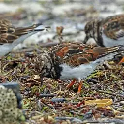 翻石鹬:体重82-135克,体长180-240毫米。体型高矮兼称,看起来十分的滑稽。…